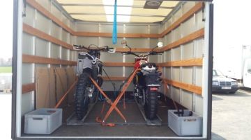 Používáme pouze dodávkové nebo skříňové vozy, popřípadě plně kryté vleky. Motocykl je po celou dobu přepravy kryt před nepřízní počasí, nenechavci, odletujícími kamínky a nečistotami. V převozních prostorech jsou nainstalovány samozajišťovací stojany a motocykly jsou po celou dobu přepravy pevně a správně upevněny. V případě skříňového vozu používáme pro nakládku a vykládku hydraulické čelo, což eliminuje možnost poškození/pádu motocyklu při těchto operacích.